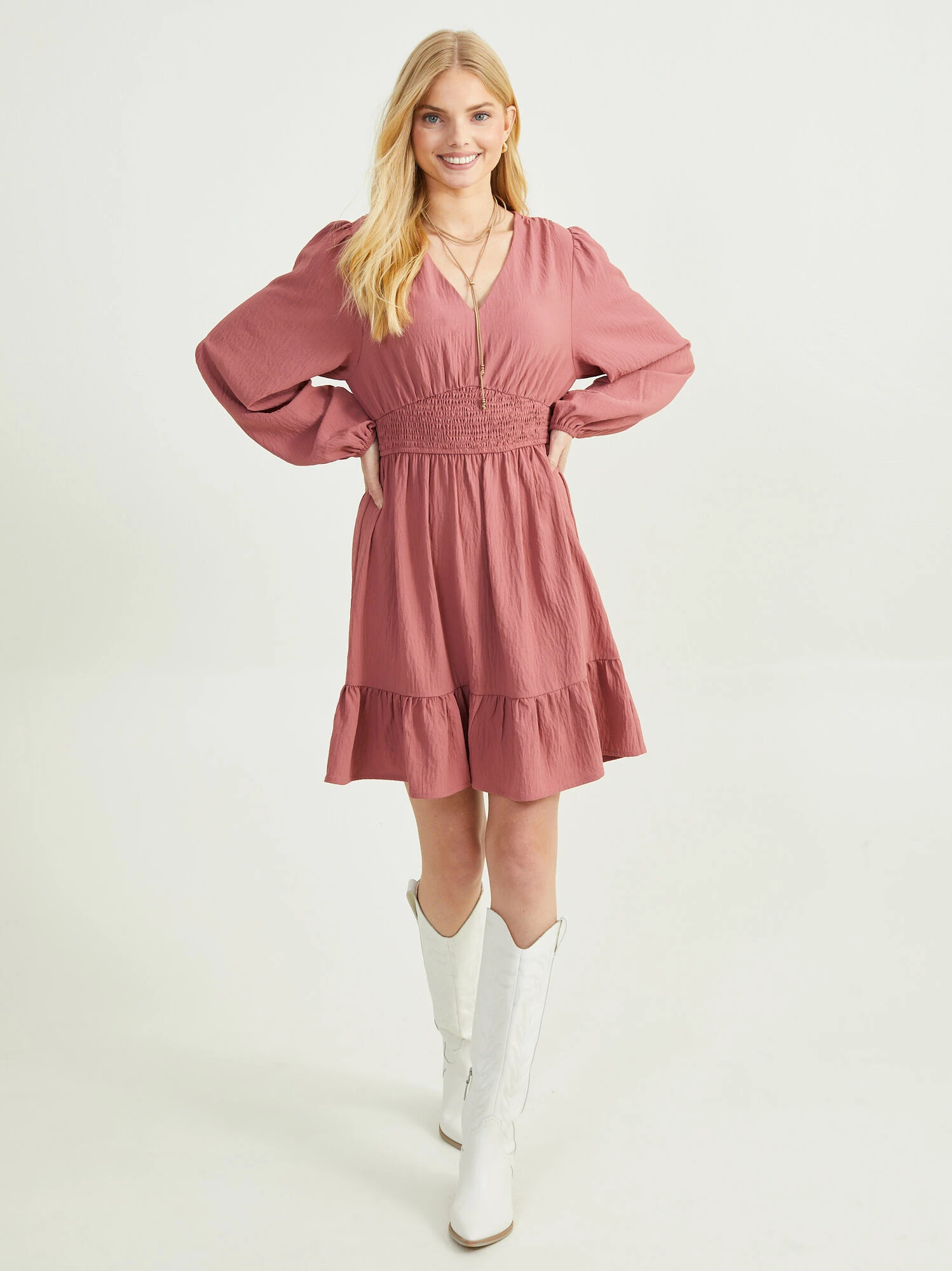 Add this simple dress to your closet so you never have to question what to wear! This classic silhouette is so stylish and sweet, perfect to pair with boots or heels to wear to any occasion. The balloon sleeves and smocked waist will have you feeling your best no matter where you go.