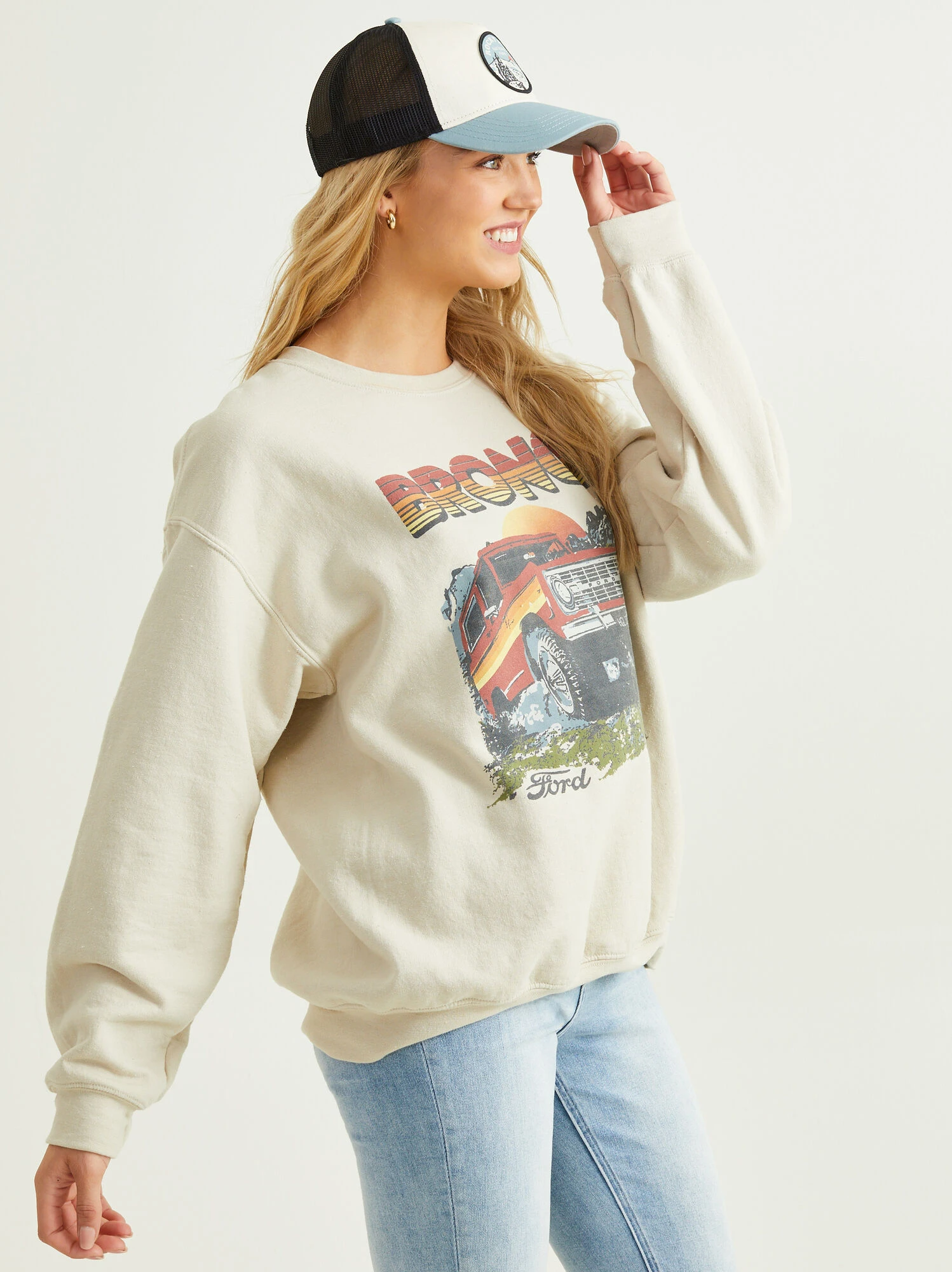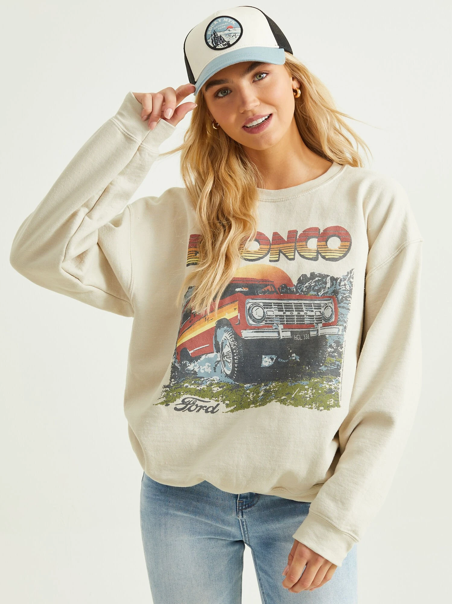 Stay on trend with this Bronco pullover! The retro inspired graphic will give you major cool girl vibes, perfect to wear when running errands or getting coffee with friends!