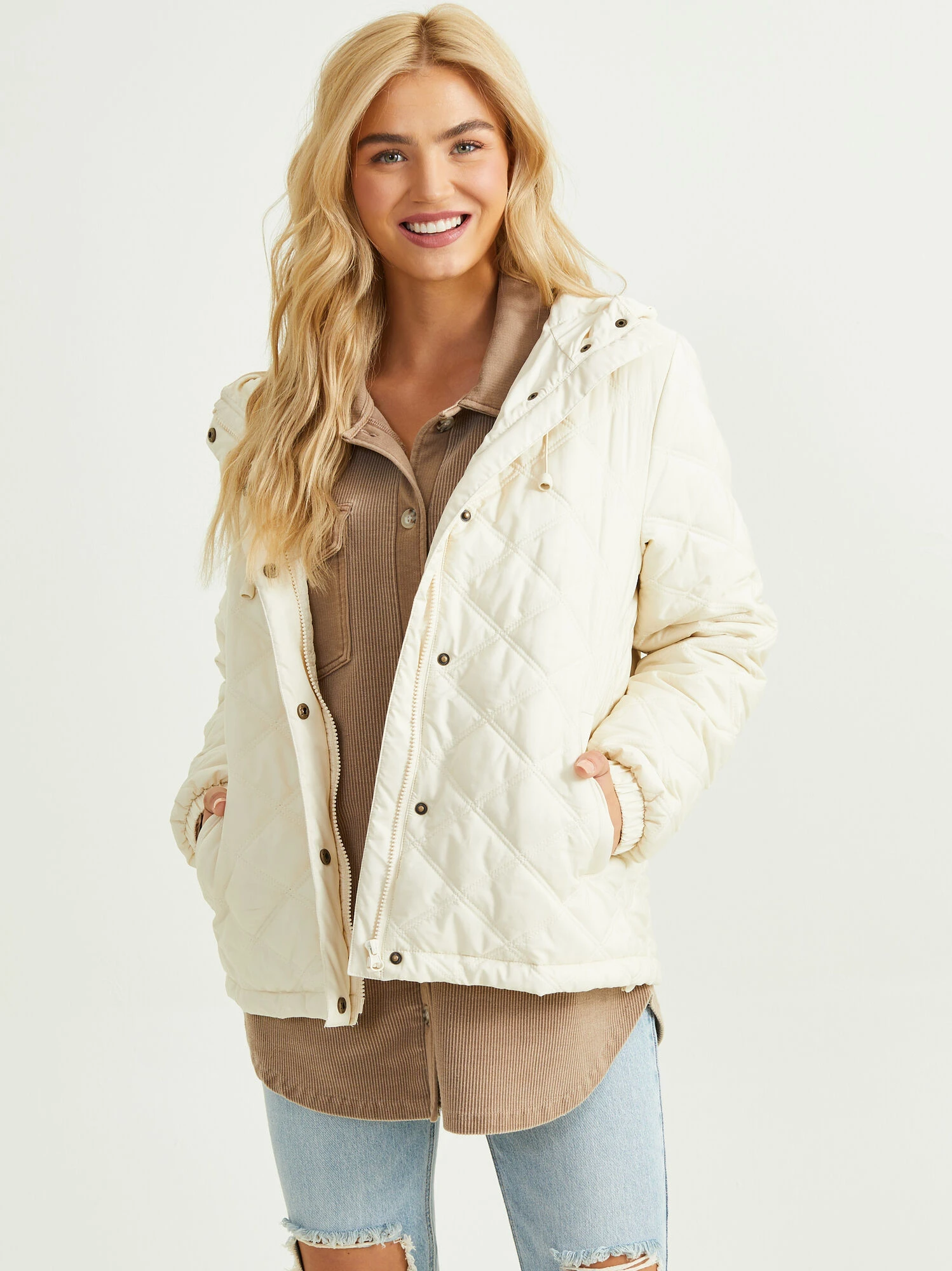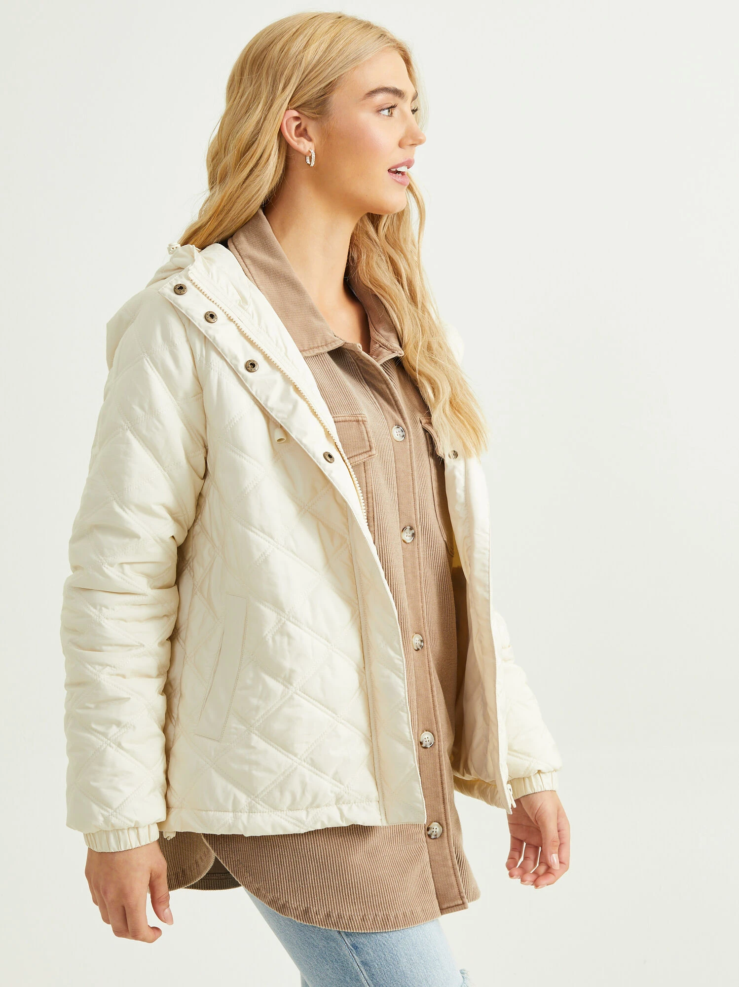 This is the perfect outerwear piece to keep you warm and stylish through the cold weather. We love the hood and zipper closure for extra warmth, and the puffer style adds a chic touch to any outfit.