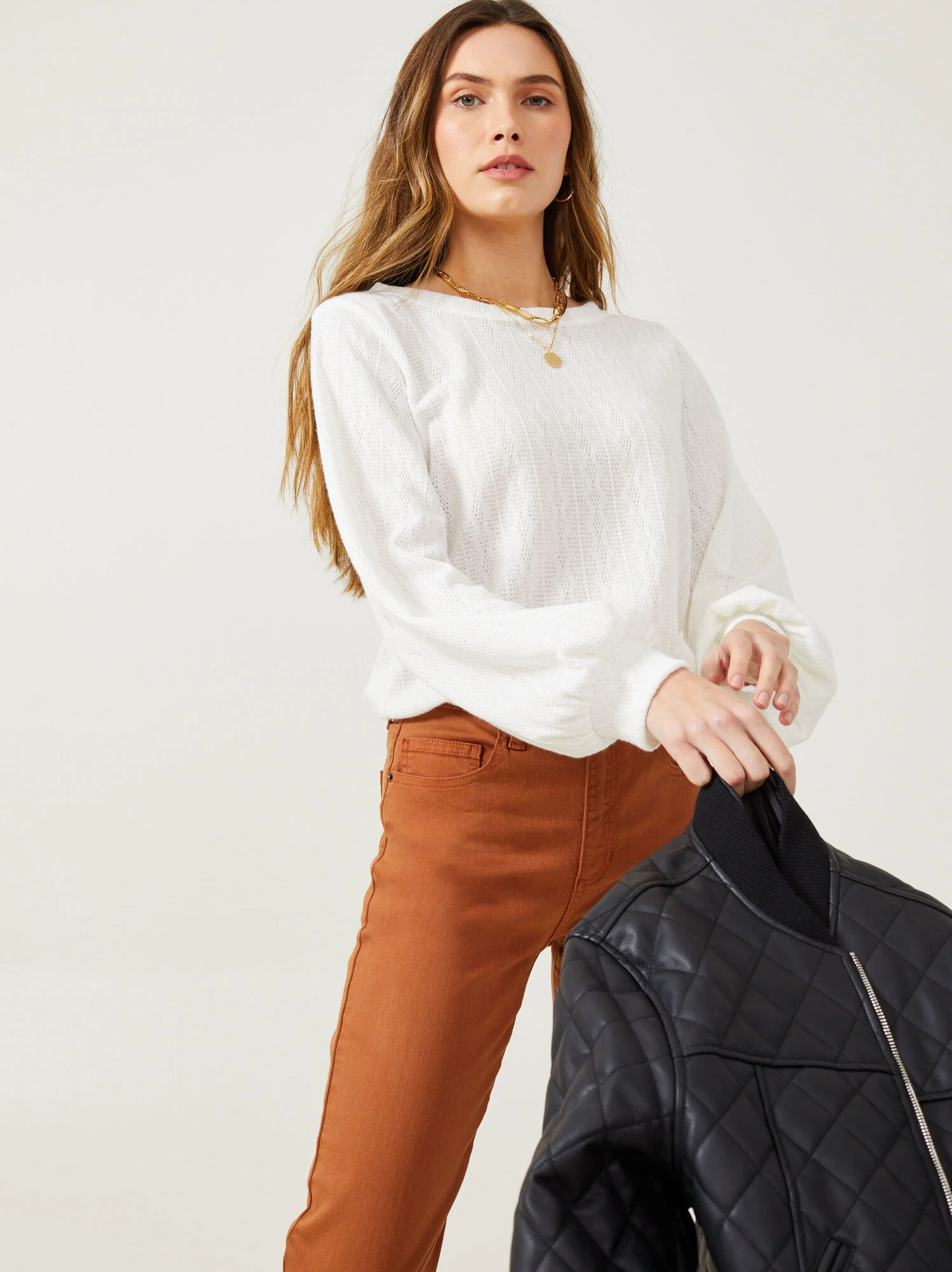 We are loving all the details that make the Jasmine Top stand out! This top features a cable knit texture with a banded hem and puffy sleeves. Pair this top with your favorite boyfriend jeans and sneakers for an effortless cute and comfy fit!