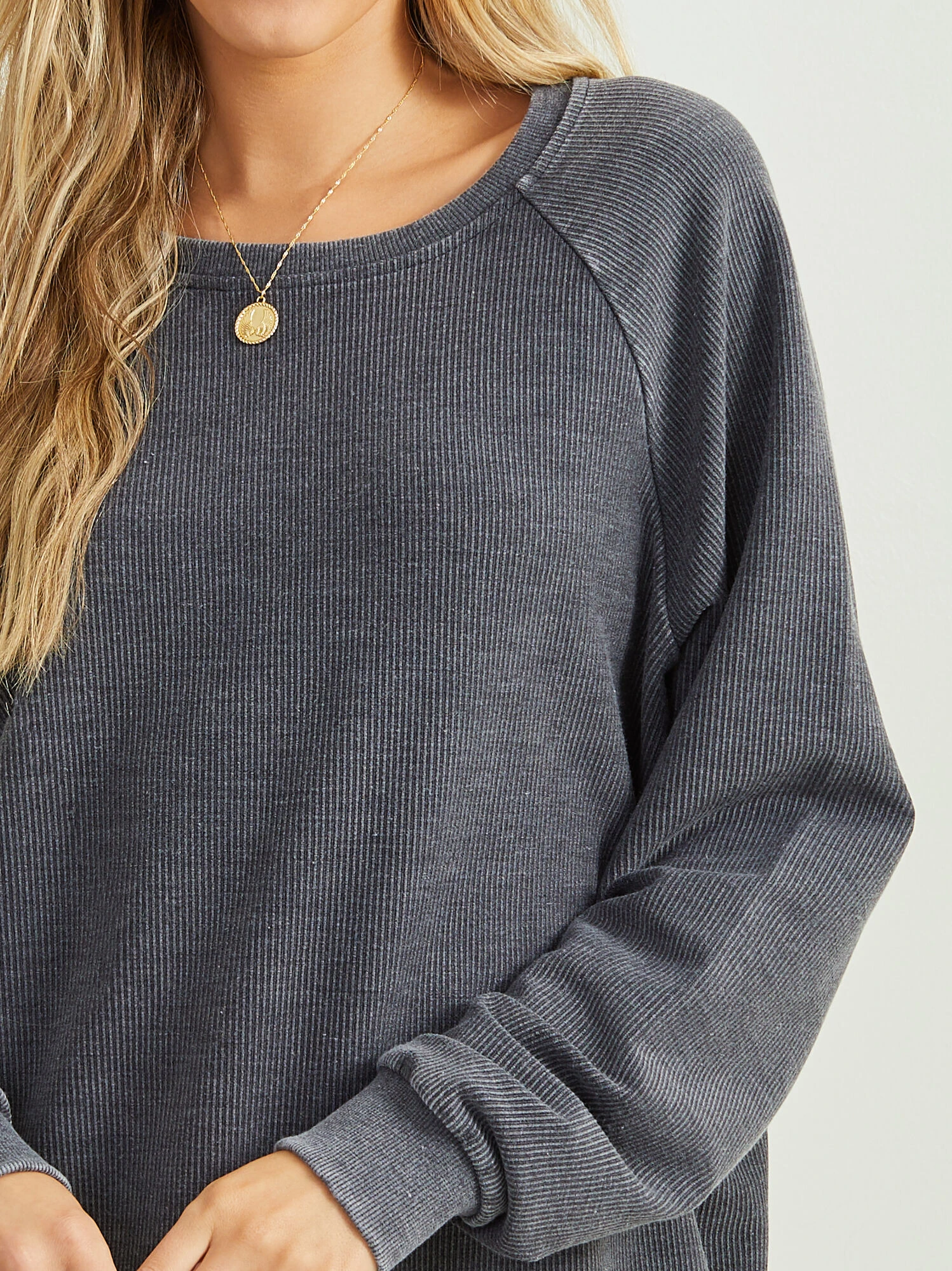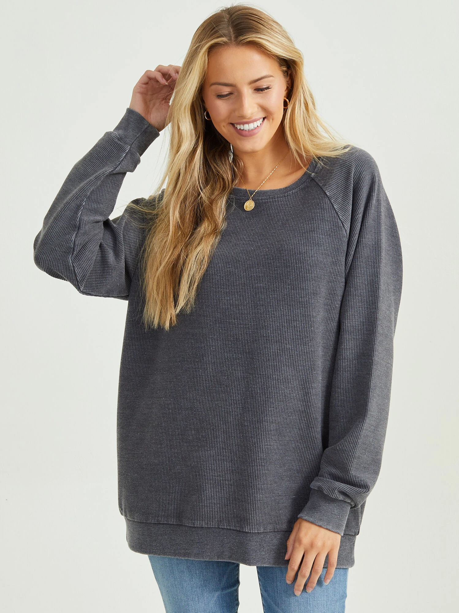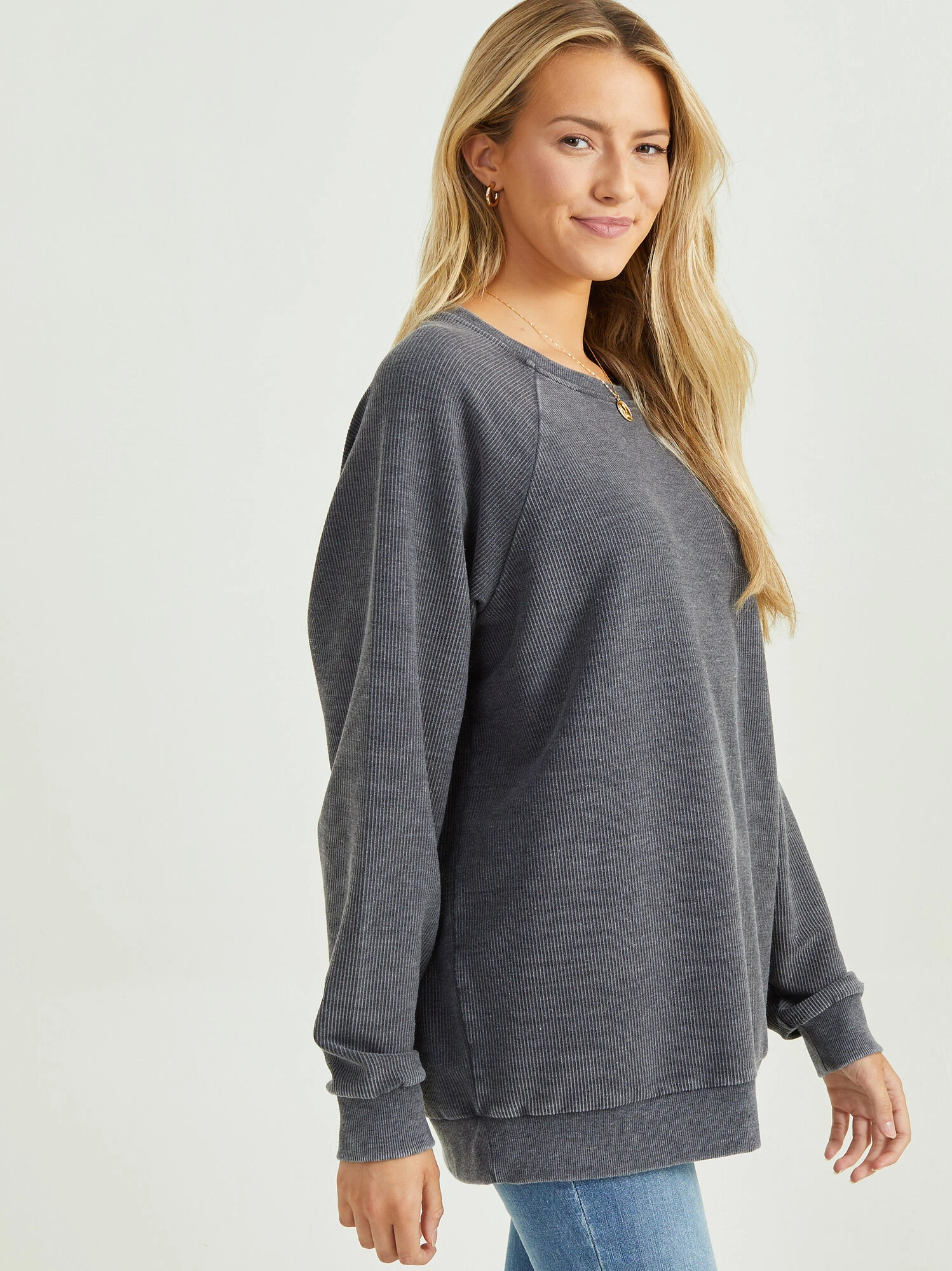 Cuddle up with this comfy knit corduroy pullover! The oversized fit and ribbed material make this perfect pullover for lounging around on a lazy day off!