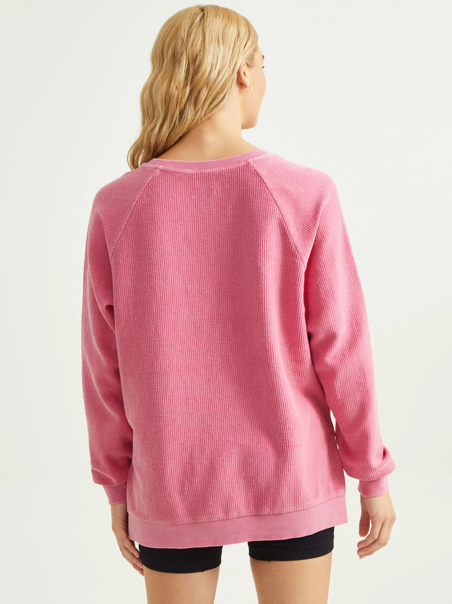 This sweatshirt is the perfect way to add a fun touch to a comfortable outfit. We love the fun, graphic design on this sweatshirt and the soft material makes for a cozy, wearable feel. Pair this sweatshirt with some leggings and platform sneakers for a day of running errands!
