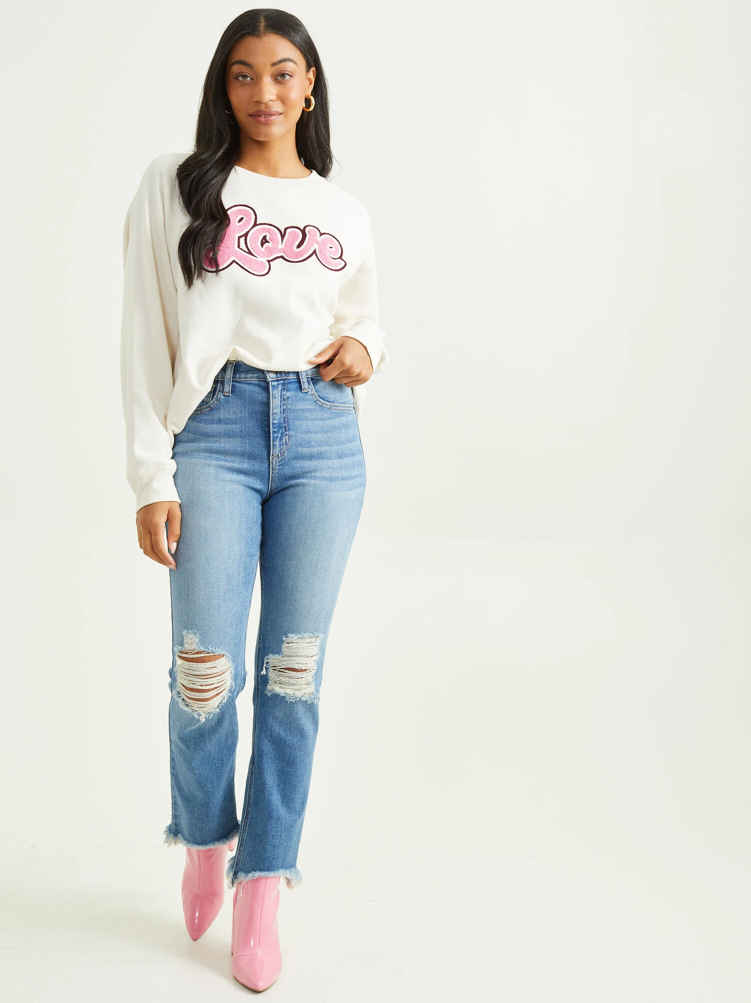 You will absolutely fall in love with this Love Patch Sweatshirt! The retro vibes on the patch are so on trend, so it’s perfect to add to your cold weather wardrobe! Pair it with your favorite pair of distressed jeans and sneaks for a cute and casual look.