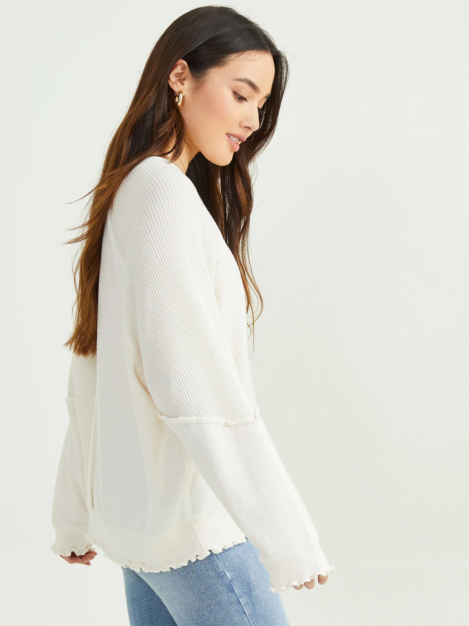 Thermal tops are so in right now, and we are living for the laid-back style of this one! This relaxed crewneck tunic mixes textures to ensure your comfort all day long, no matter how or where you wear it. The ruffle trim is adorable and will look fabulous paired with jeans or leggings and your favorite pair of white sneaks.
