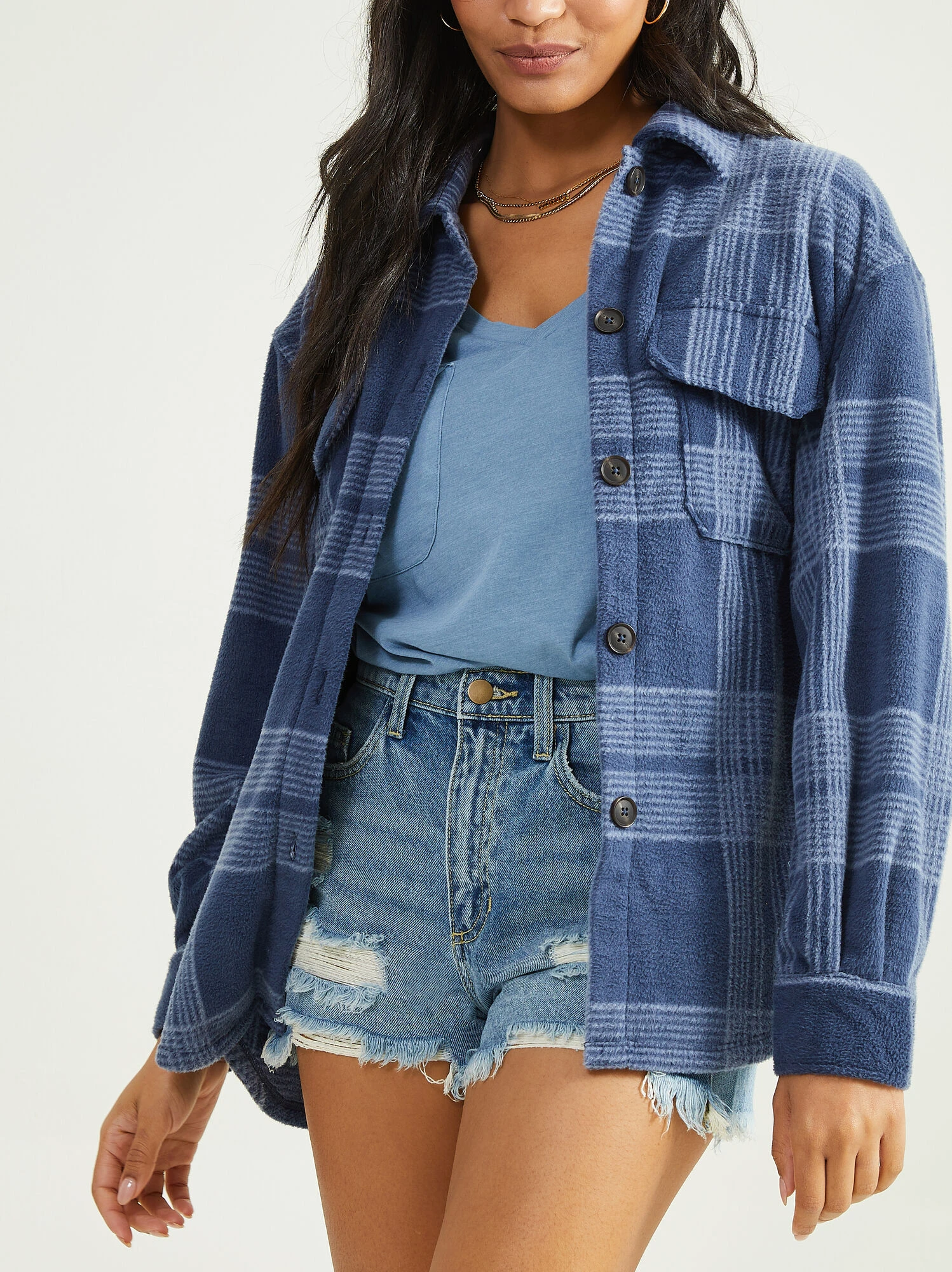 Stay warm and on-trend with this stylish fleece jacket. The buttery-soft material and plaid pattern will add the perfect amount of texture to your look. Pair with a beanie and combat boots for an outdoorsy vibe!